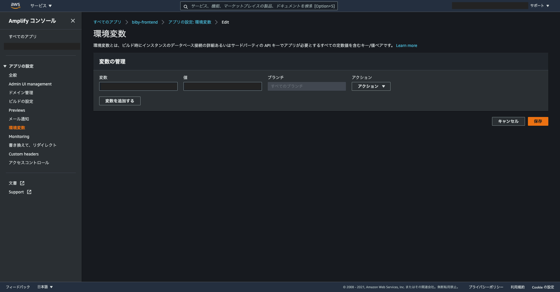 amplifyでの環境変数設定
