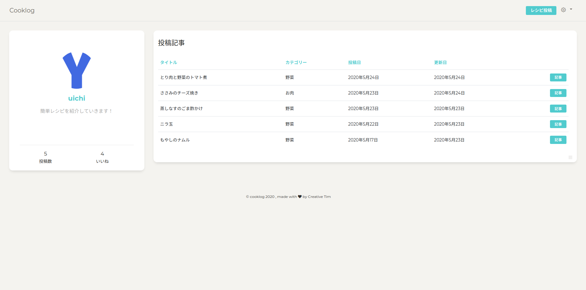 cooklogというサービス名で、Markdownでレシピ投稿ができるサイトを作りました!