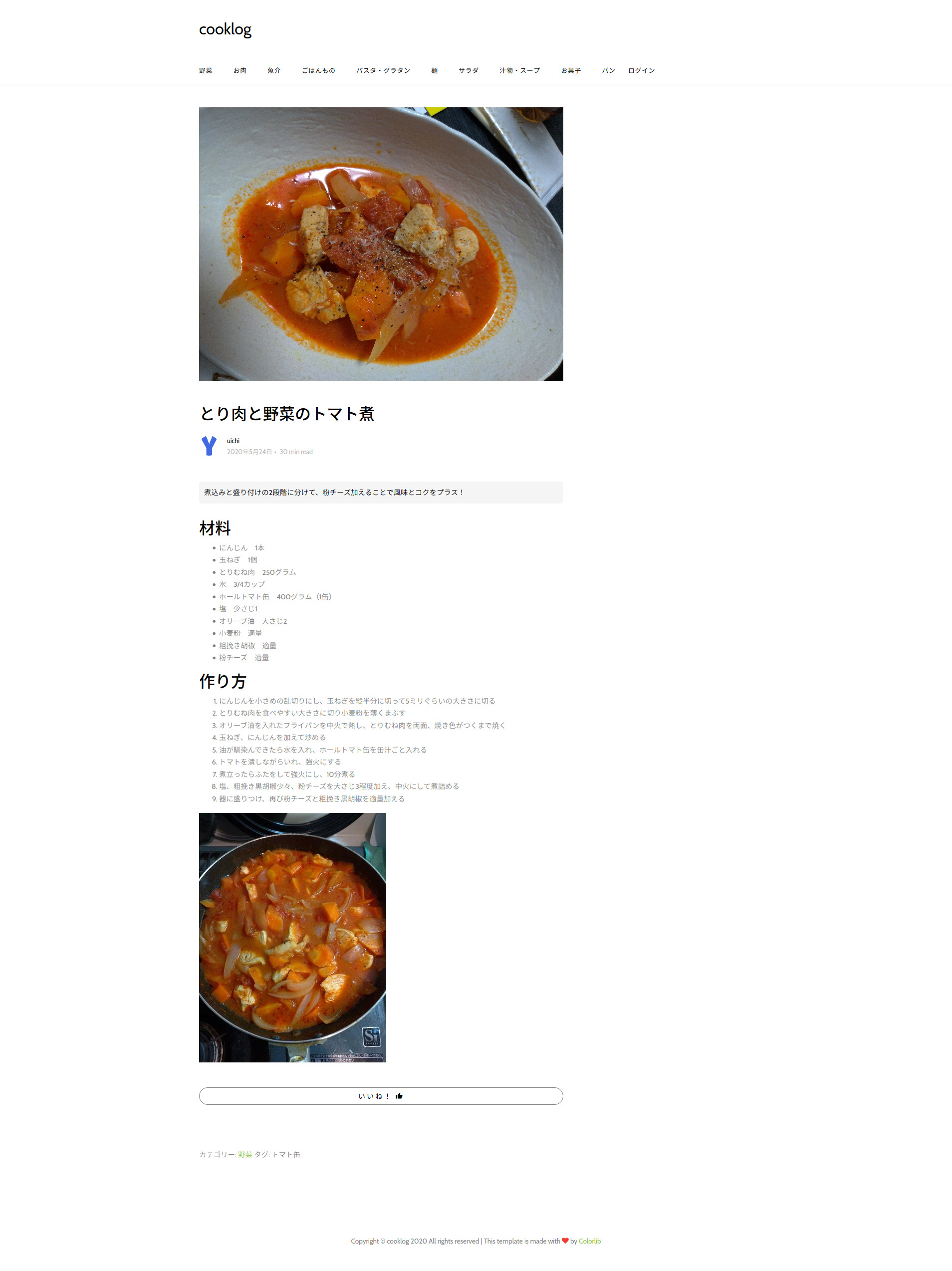 レシピのページはこのような感じになっています。